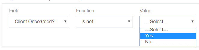 Depending on the function you select, you will be given an option to select a value (if applicable). In the example below, if “yes is not selected”, then the task will be skipped