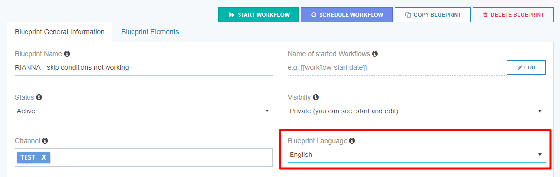 If your blueprint is written with a certain language, you can set the blueprint’s langugae so other users can easily search for blueprints in that language.